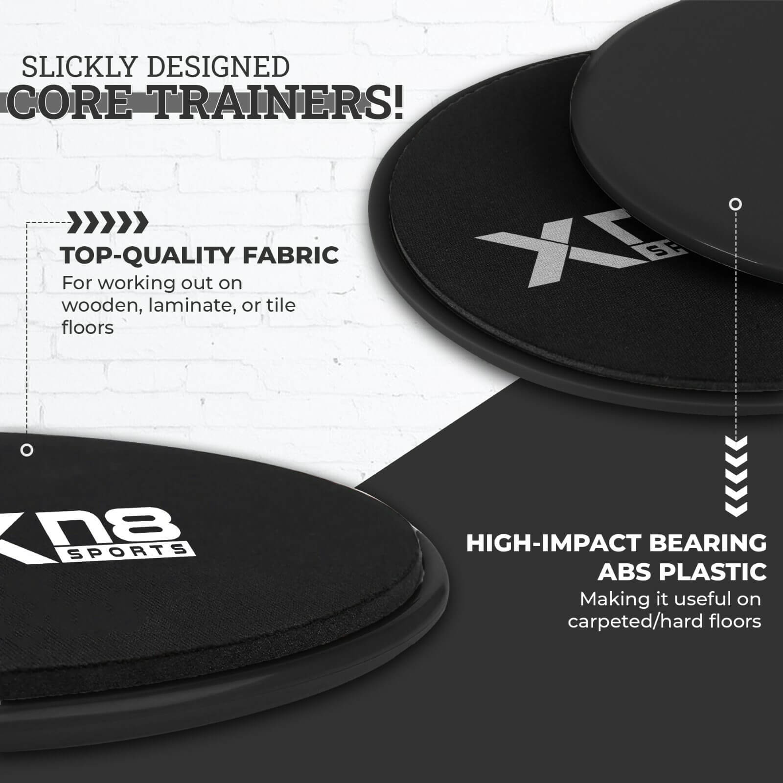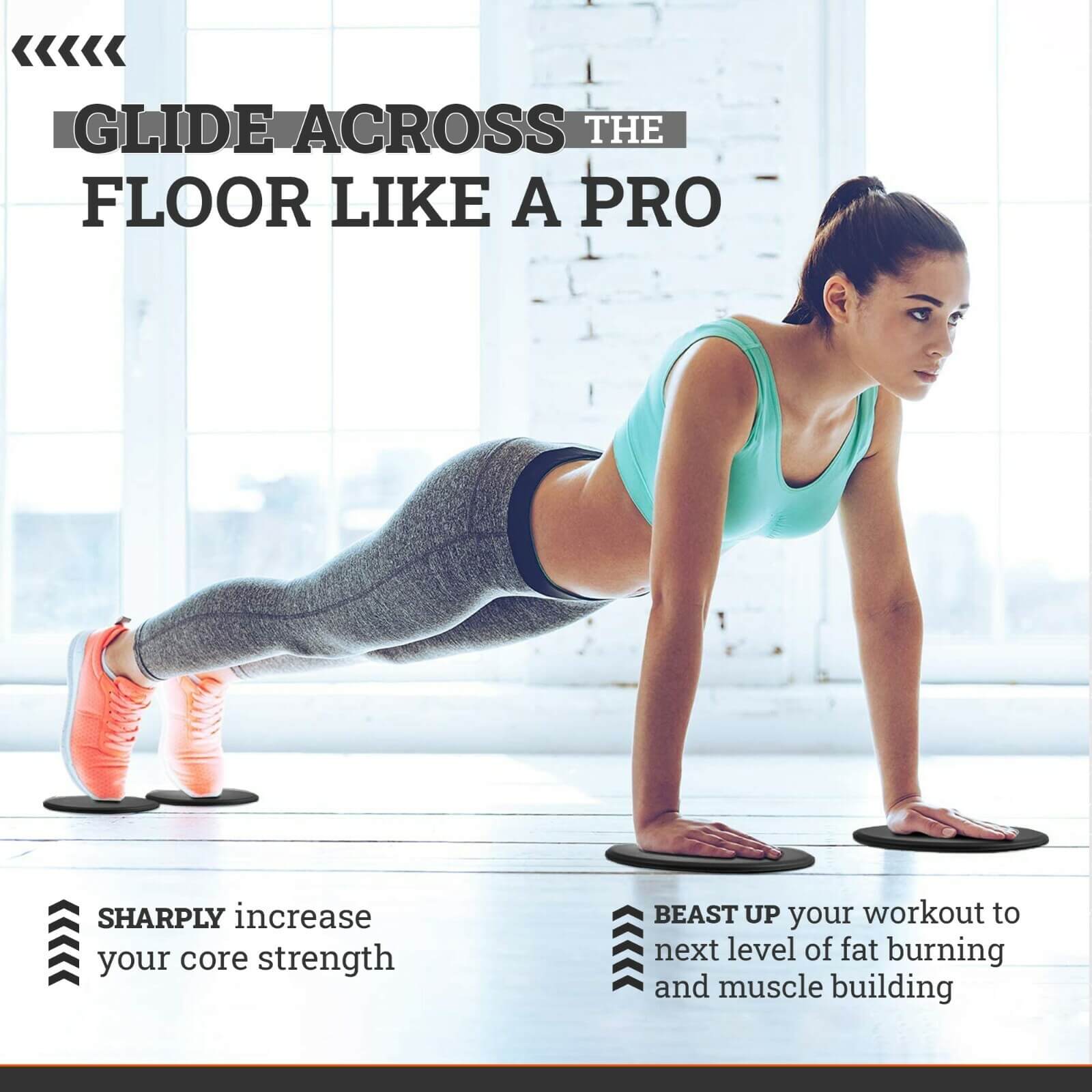 Core Sliders help athletes and fitness enthusiasts alike to tone and attain fitness goals. They improve your body’s agility and balance by making your standard exercises more difficult without stressing your knees and hips. These two-sided, non-scratch gliders feature high-quality ABS plastic on one side and premium fabric on the other for safe and easy use on hardwood, tile, and carpet surfaces. With our core sliders, you can practice a wide range of low-impact core moves and full-body toning workouts anytime, anywhere.