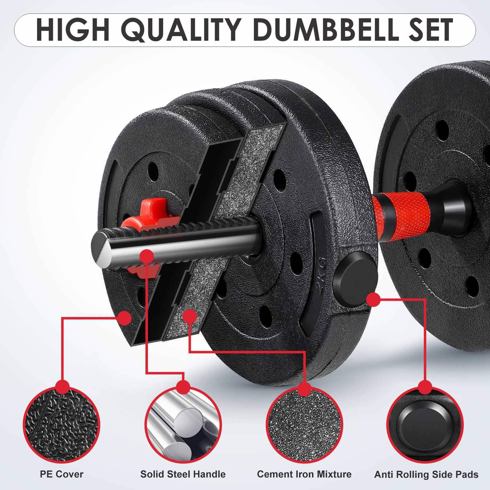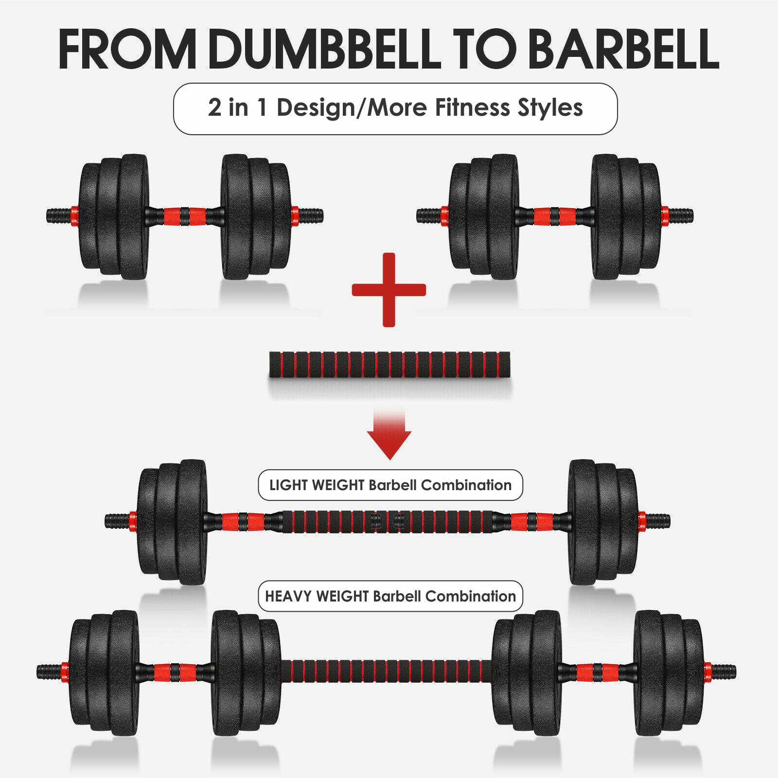 - 2-in-1 Dumbbell & barbell set can be used as a dumbbell and barbell lifting. Use the connecting rod to link two sides of dumbbells together or remove the rod to use as dumbbells.