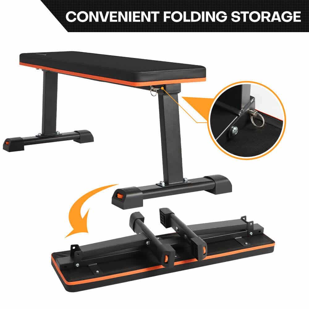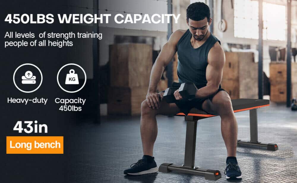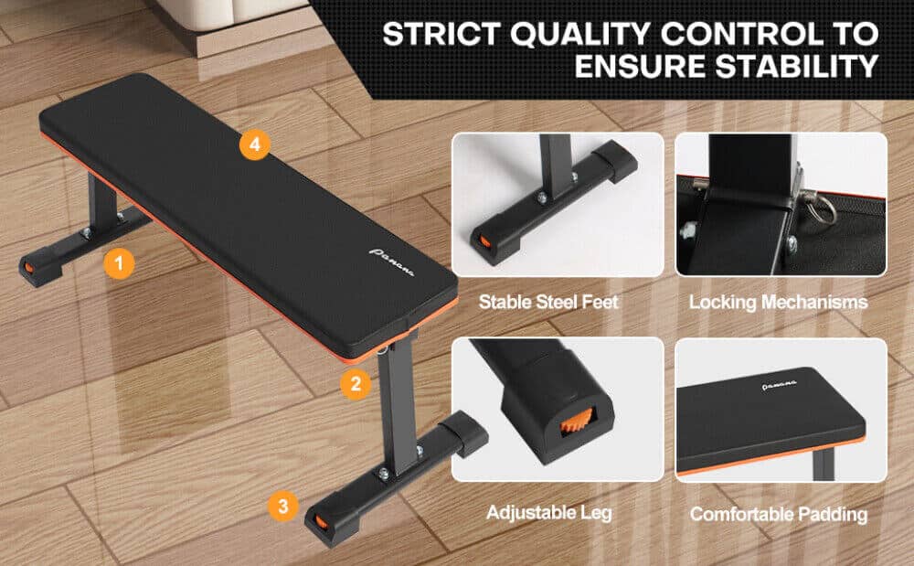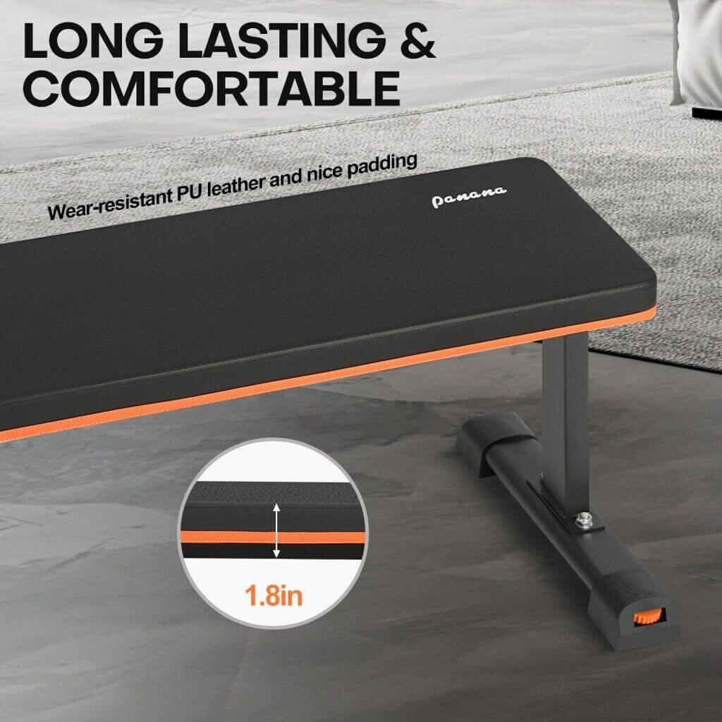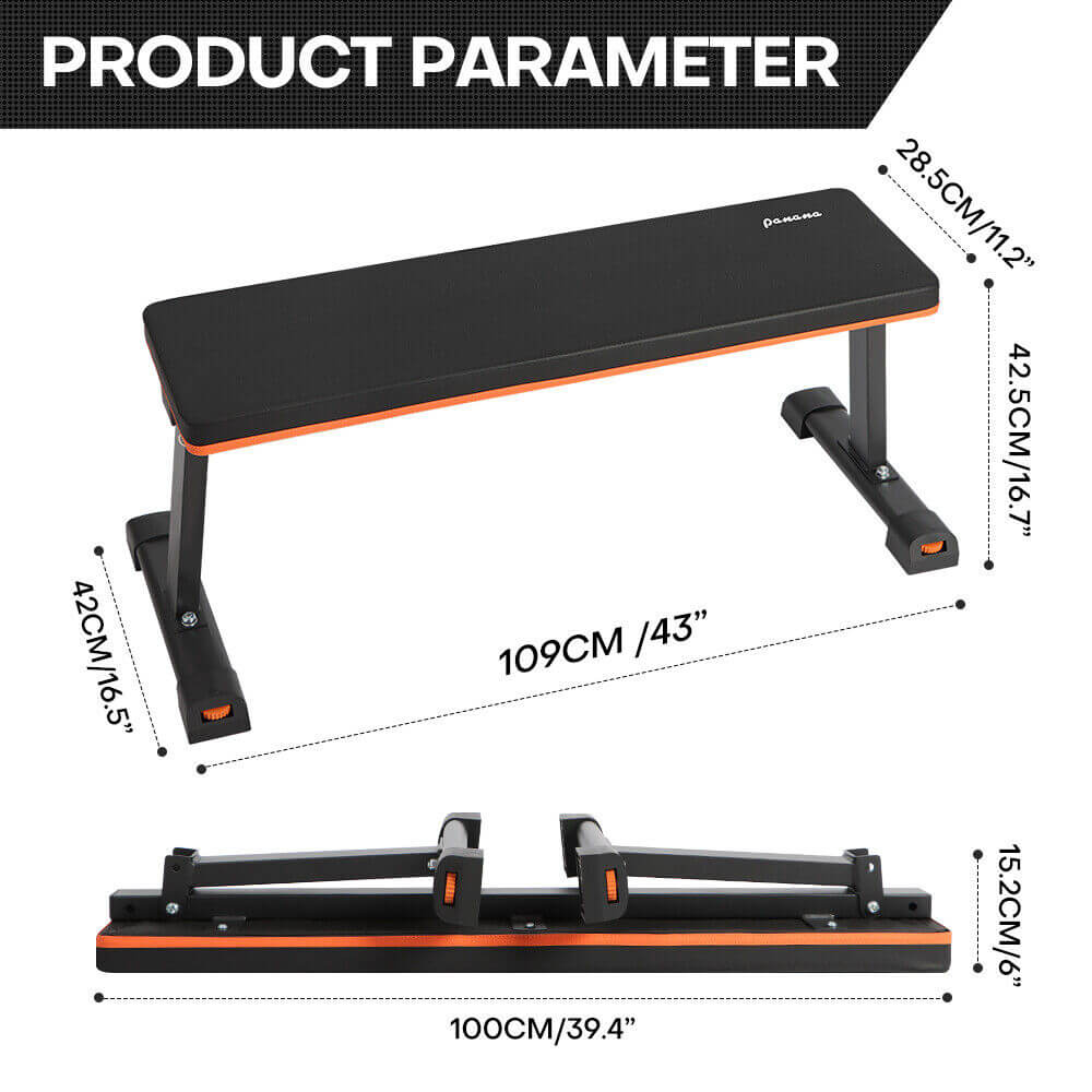 - Comfortable Design Weight Bench – High density foam pad both provide comfortable exercise experience and protect your body safe. The 43 inch / 109 cm length flat PU pad provide enough space to do any exercise.