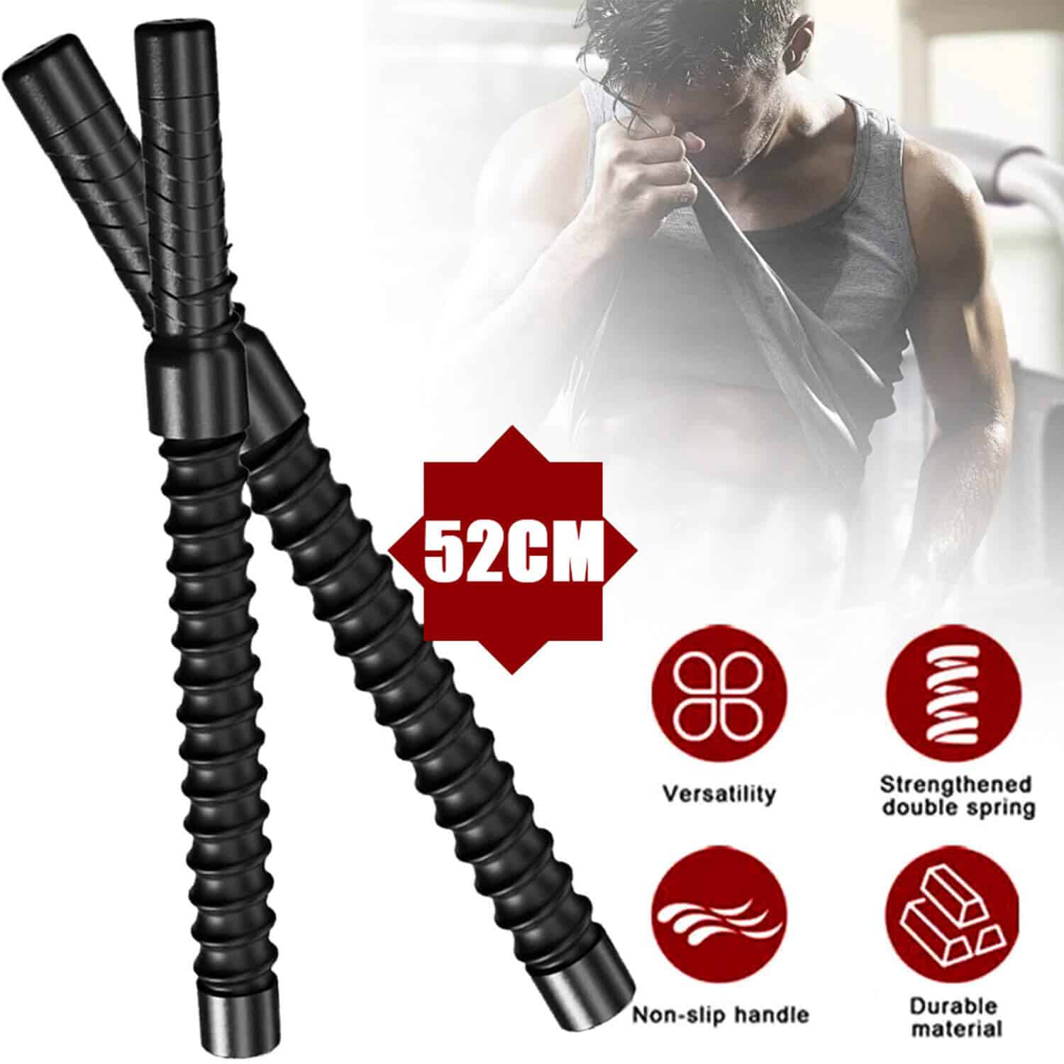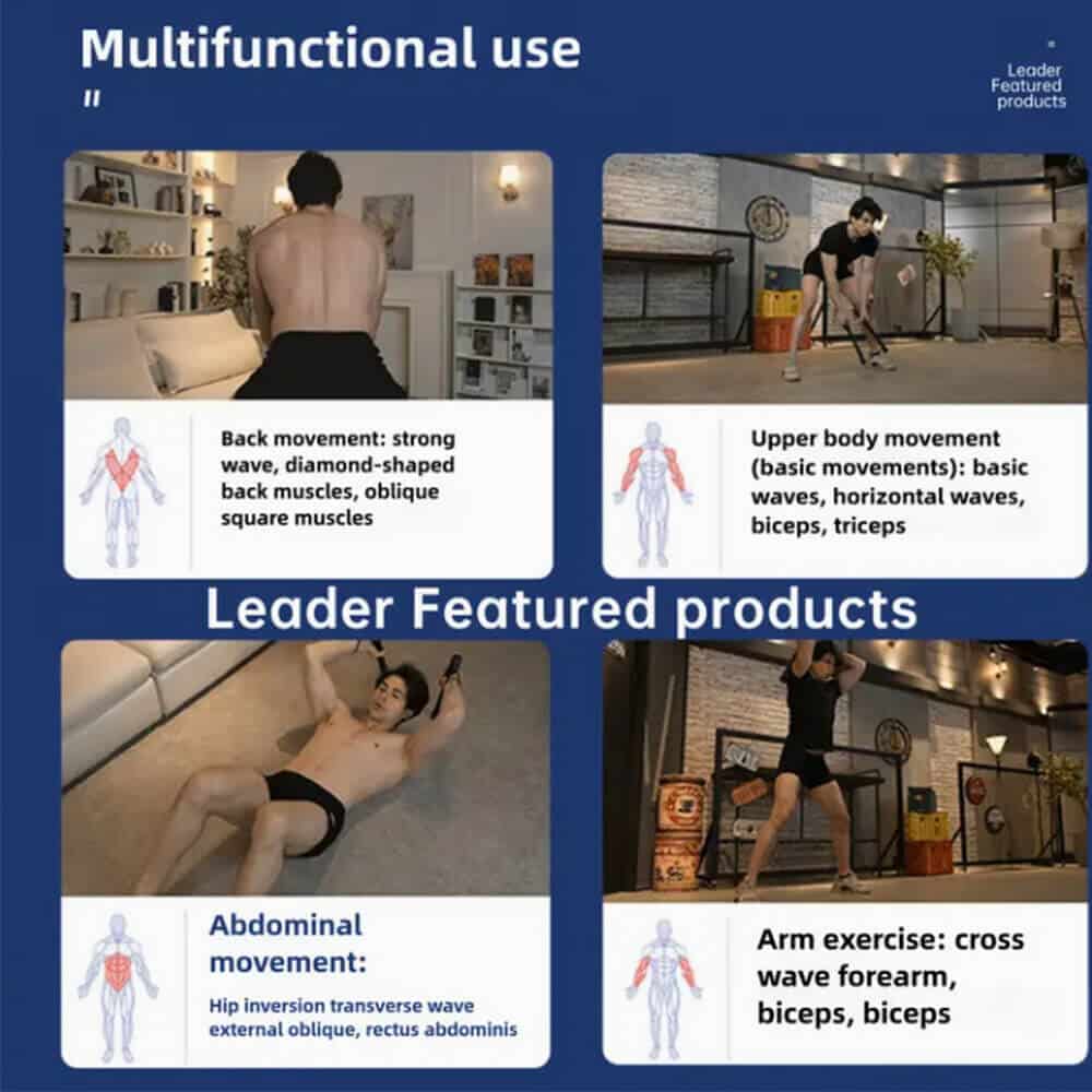 They have a spring-loaded mechanism providing powerful rebound and inertia. It delivers continuous high-frequency vibrations, targeting core muscle groups through continuous eccentric contraction, providing an intense and effective training experience. Its design enhances strength training and provides effective exercise without the bulk of traditional ropes.
