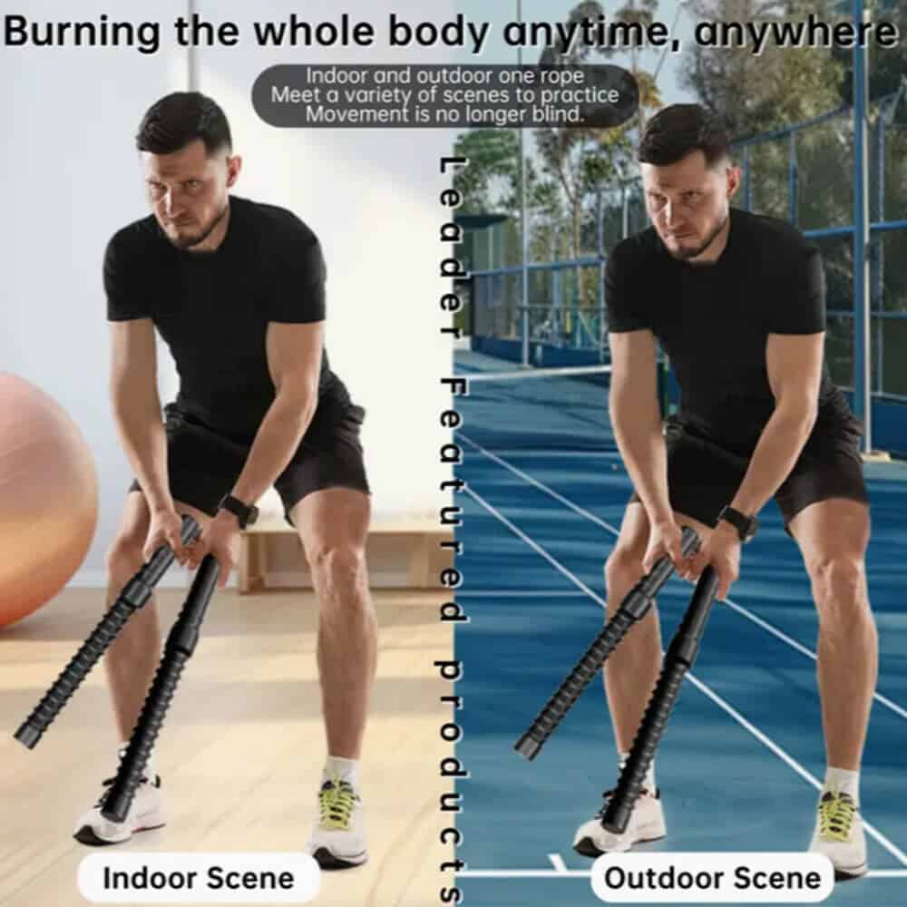 Ropeless Battle Ropes gives you the benefits of gym battle rope exercise without needing the room for the exercise and storage.